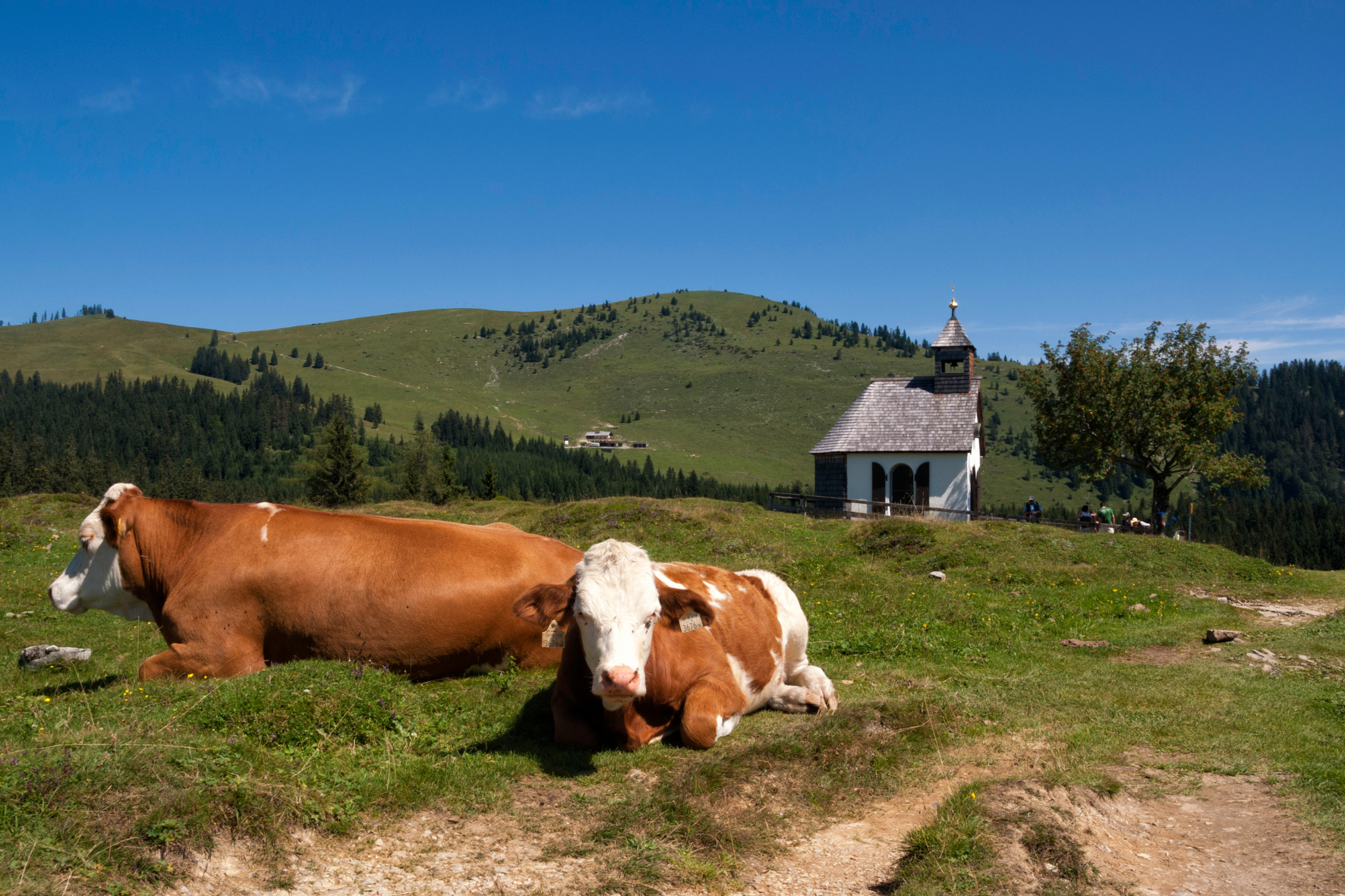Almwiesen, sanfte Rücken, breite Wege, lichte Wälder und stille Blicke auf Seen und Berge prägen dieses Gebiet.